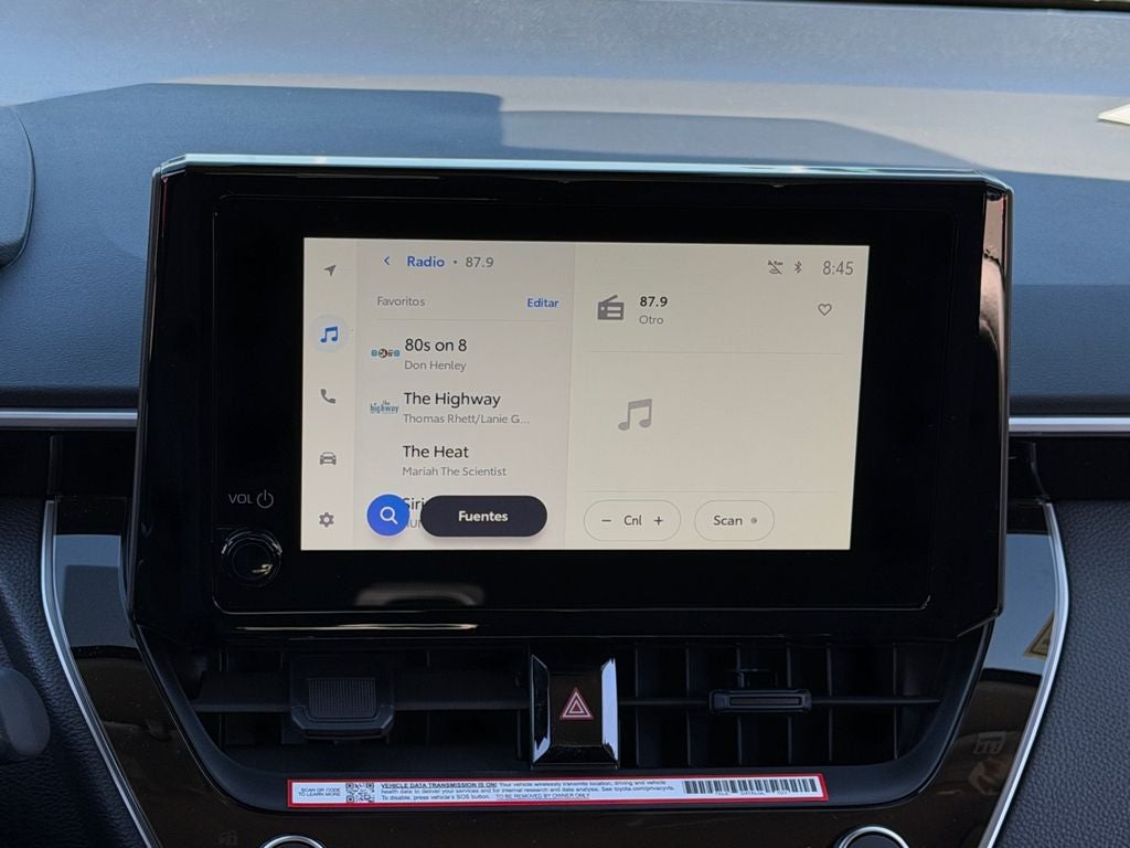 - 8-in. Toyota Audio Multimedia touchscreen with six speakers, wireless Apple CarPlay® & Android Auto™ compatibility, SiriusXM® 3-month trial subscription. See toyota.com/audio-multimedia for details.