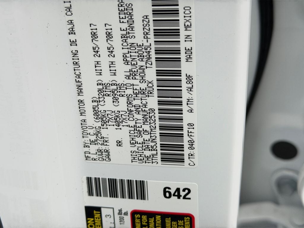 - Vehicle Name: Toyota Tacoma 4WD