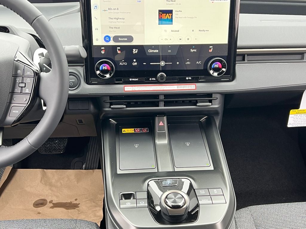 - Center console with covered storage compartment, two cup holders, two Qi-compatible wireless chargers and front lower storage tray